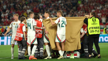 ففي الدقيقة 7 من زمن المباراة، تعرض أحد أعضاء الجهاز الفني في منتخب المجر، آدم سالاي، للإصابة خلال جلوسه على دكة البدلاء، قبل أن يتدخل الجهاز الطبي على الفور لمعالجته، في حين قام بعض الأشخاص بالتغطية لمنع رؤية الإصابة التي بدت صعبة للغاية، مما أثار القلق في الملعب.